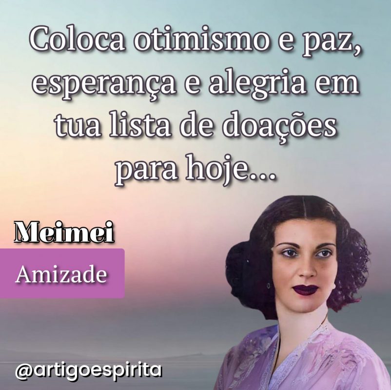 Não são coisas que custam dinheiro. Não dependem de circunstâncias externas. São estados internos que, quando cultivados conscientemente, tornam-se dádivas que distribuímos ao longo do dia sem nem perceber. Um olhar sereno para alguém que está nervoso. Uma palavra gentil quando o ambiente ao redor pede rispidez. Uma postura de esperança quando o pessimismo parece mais razoável. Essas são as doações que Meimei nos pede. E são, na maioria das vezes, as mais transformadoras.